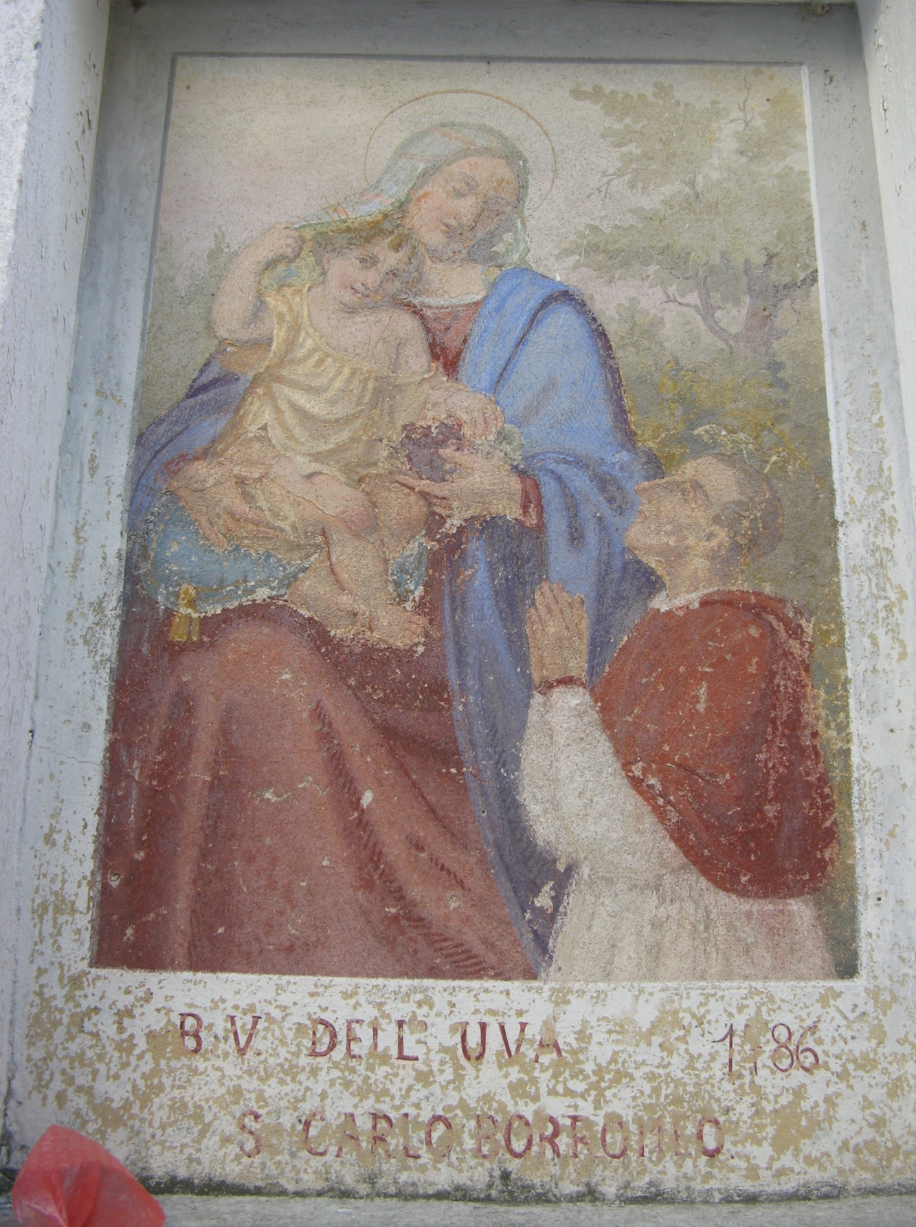 Affresco di San Carlo Borromeo prima del restauro