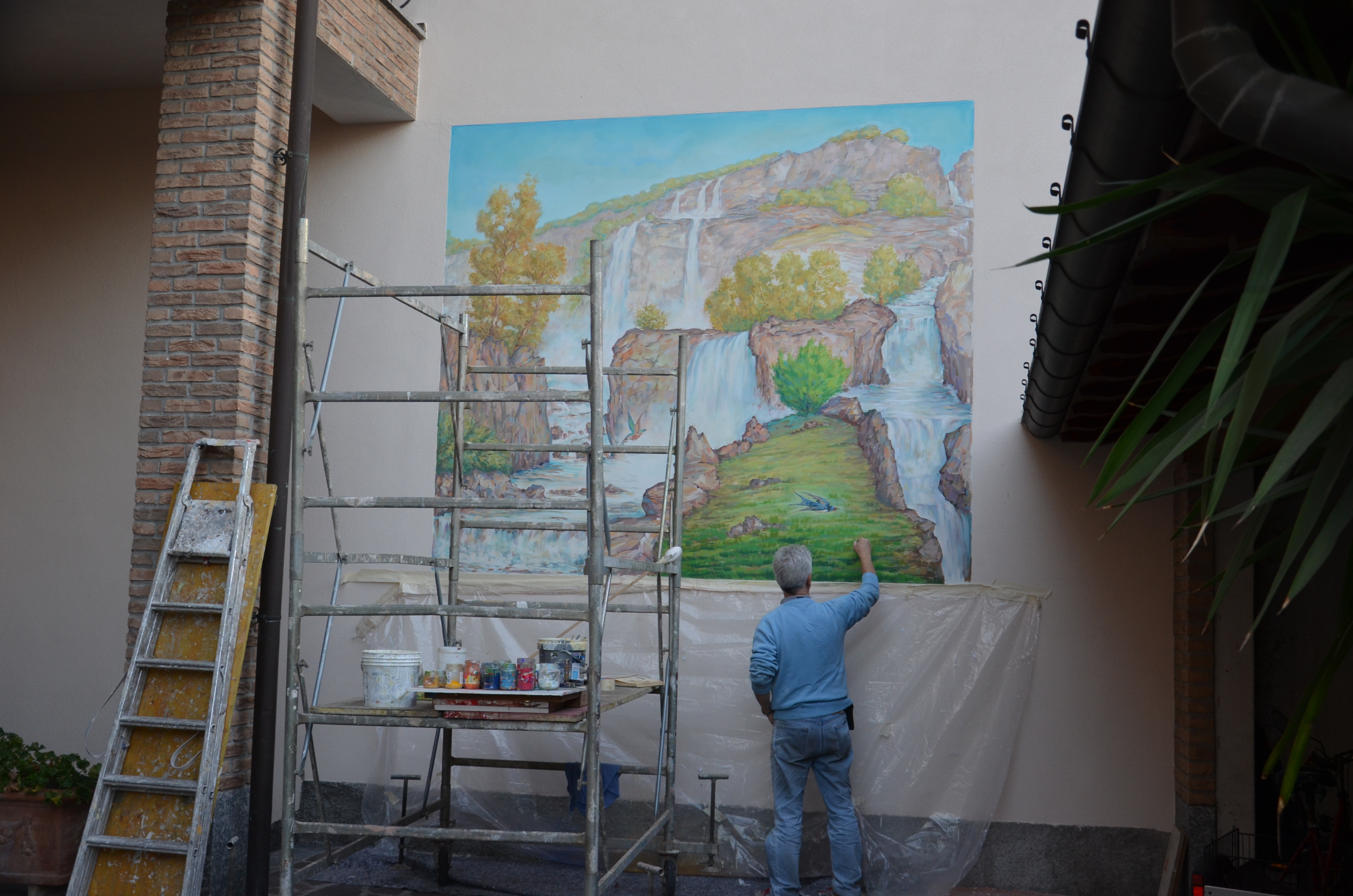 Abitazione a Seregno - artista al lavoro - paesaggio di montagna con cascata
