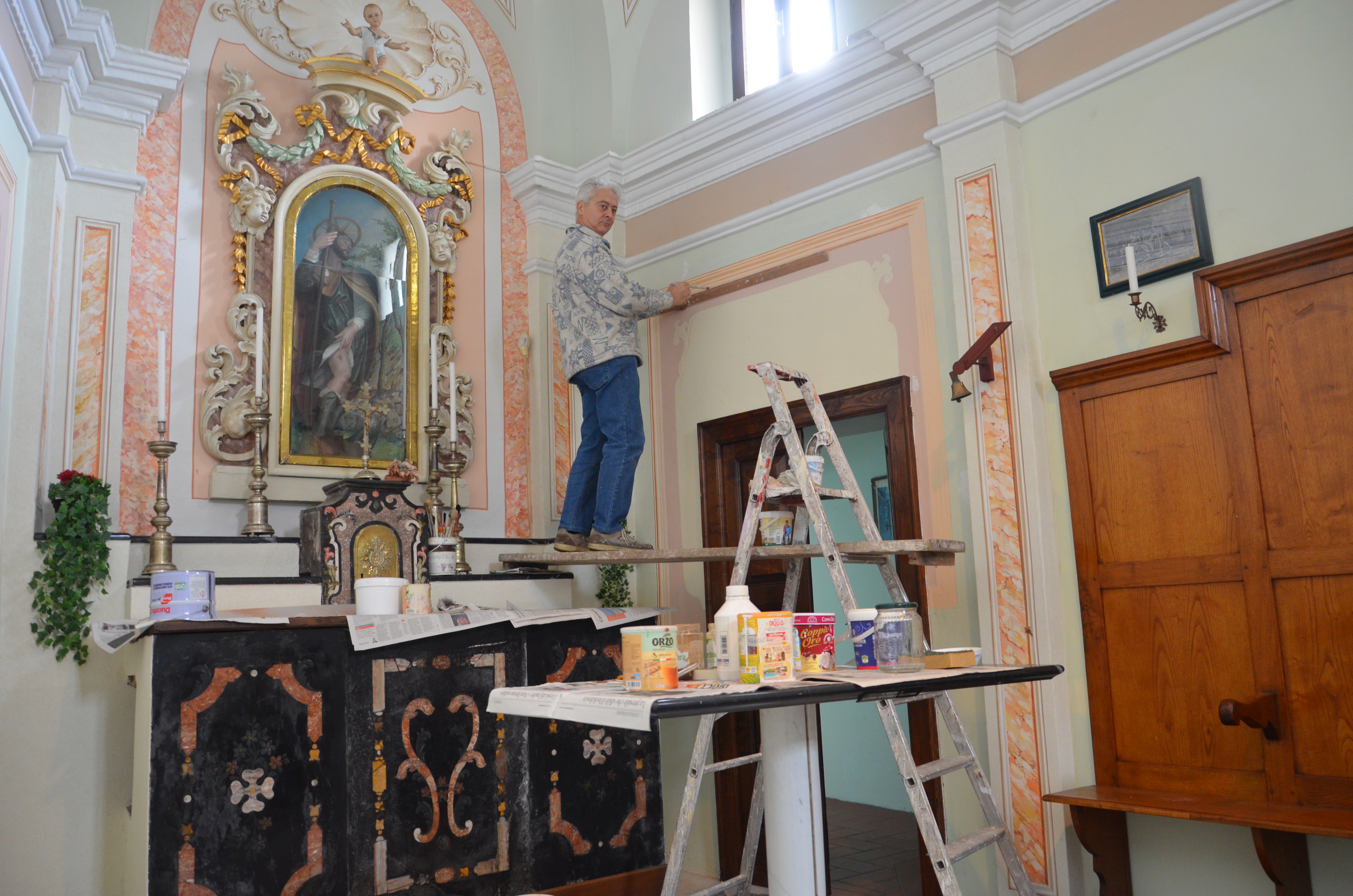 Ultime fasi dell'affresco della chiesetta di San Rocco a Mosnico