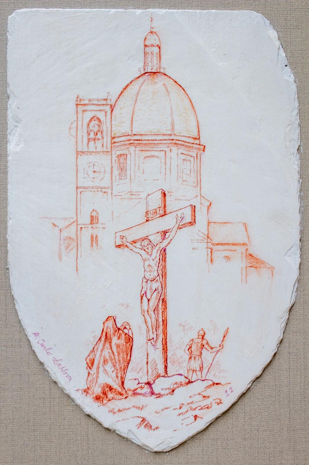 Crocifissione - tecnica mista su scandola 20x30
