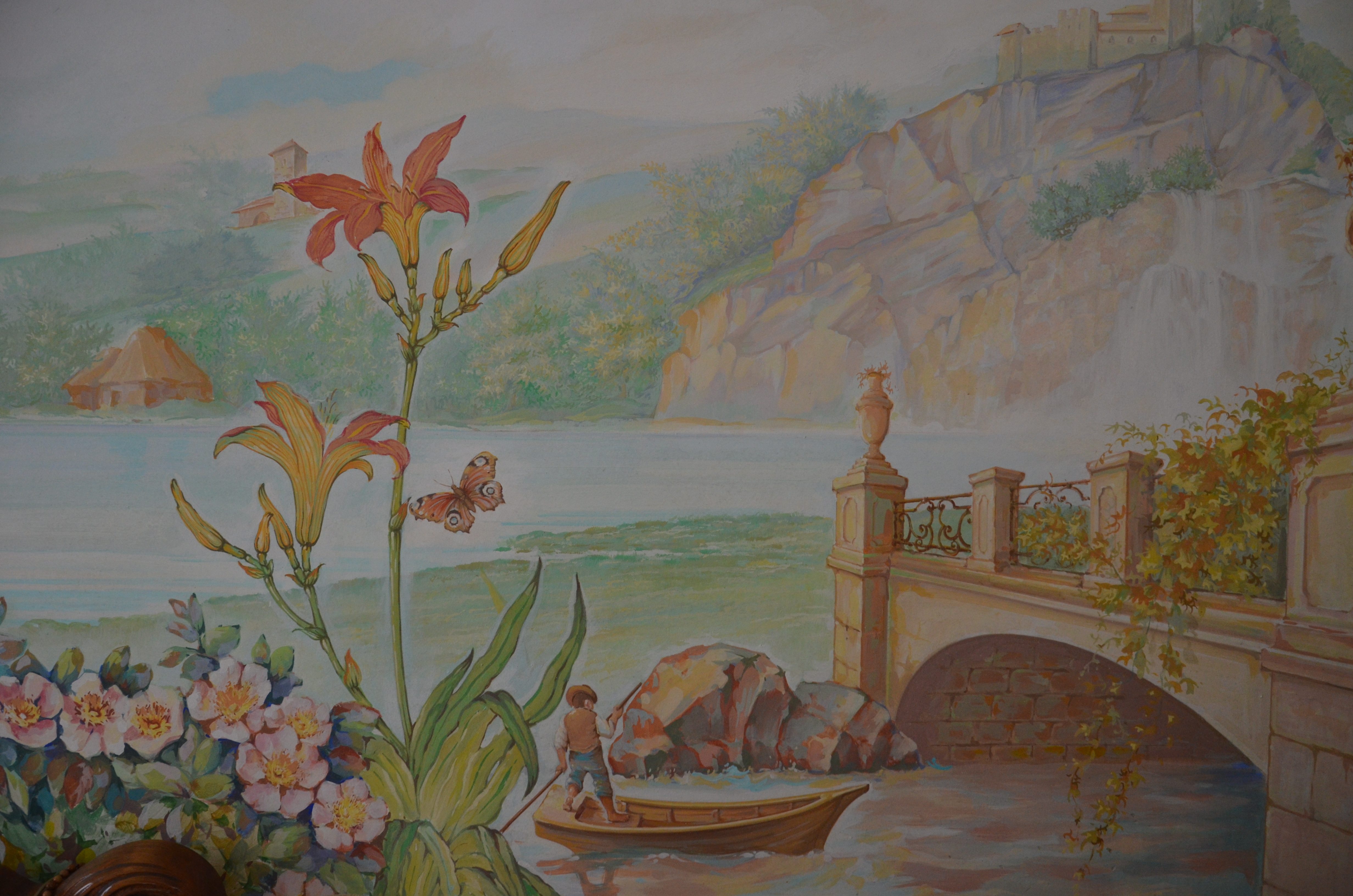 Particolare d'affresco - vecchio ponte con castello sullo sfondo